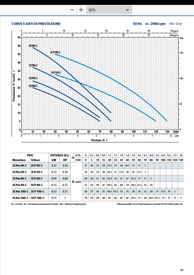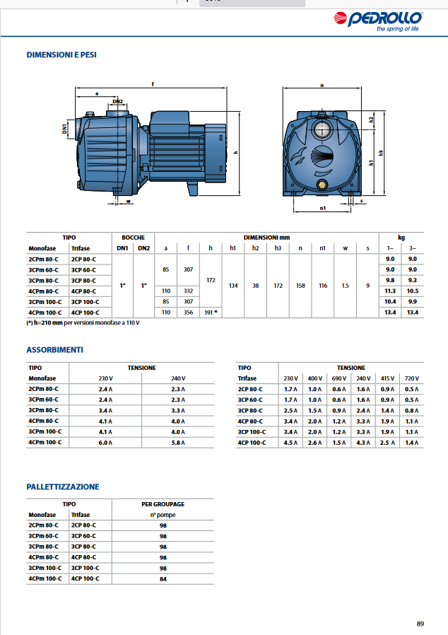 Elettropompa centrifuga multigirante silenziosa PEDROLLO 4CPm100 HP. 1,0