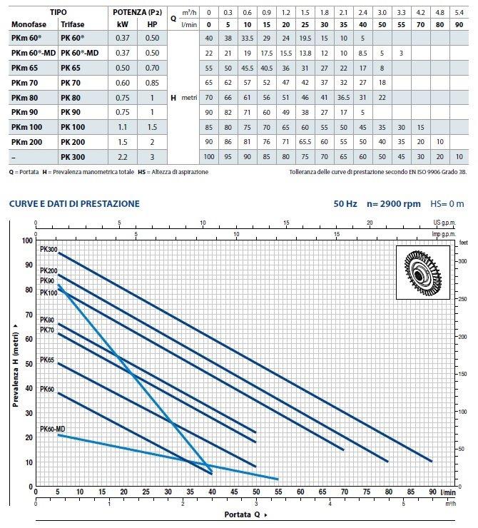 • Pressione max nel corpo pompa: - 6 bar ( PK 60, PK 60-MD, PK 65 )