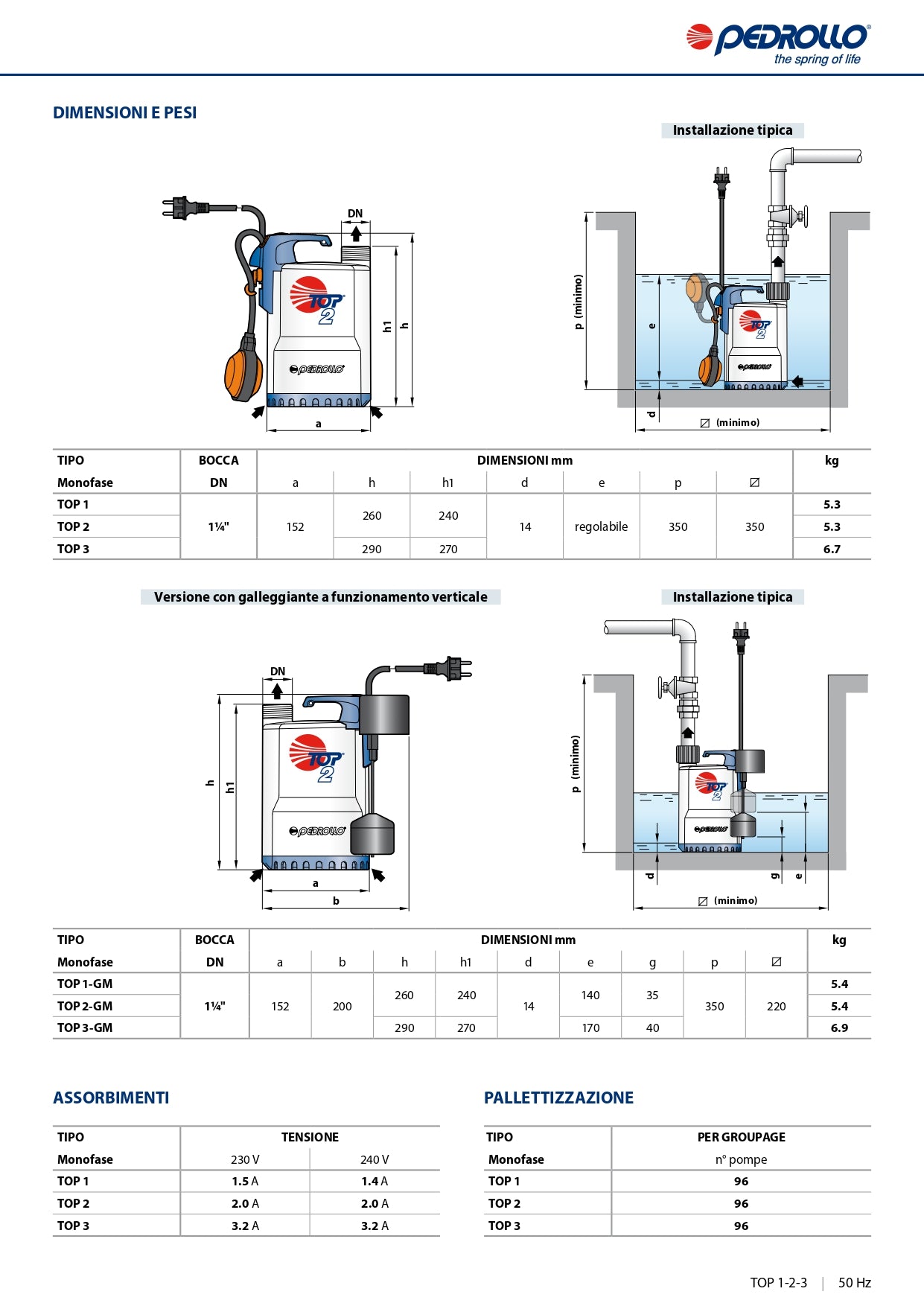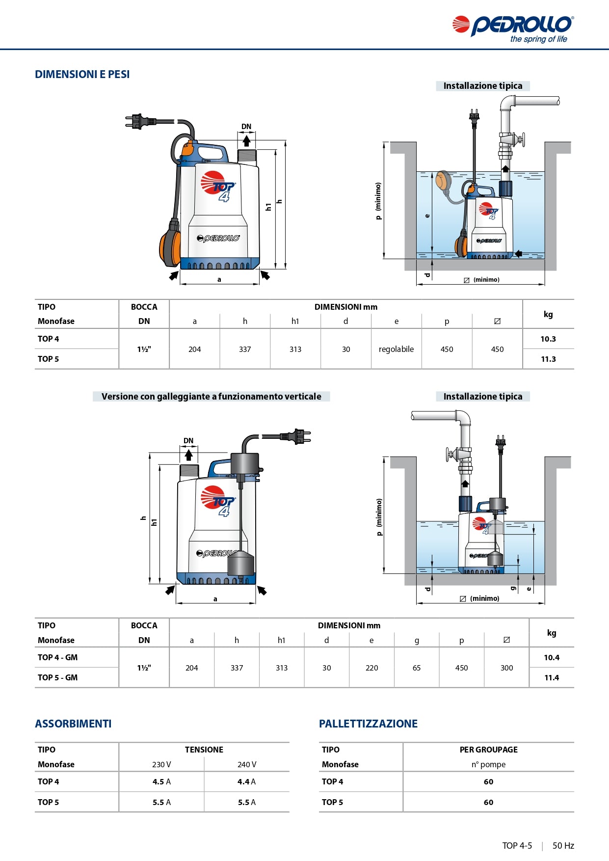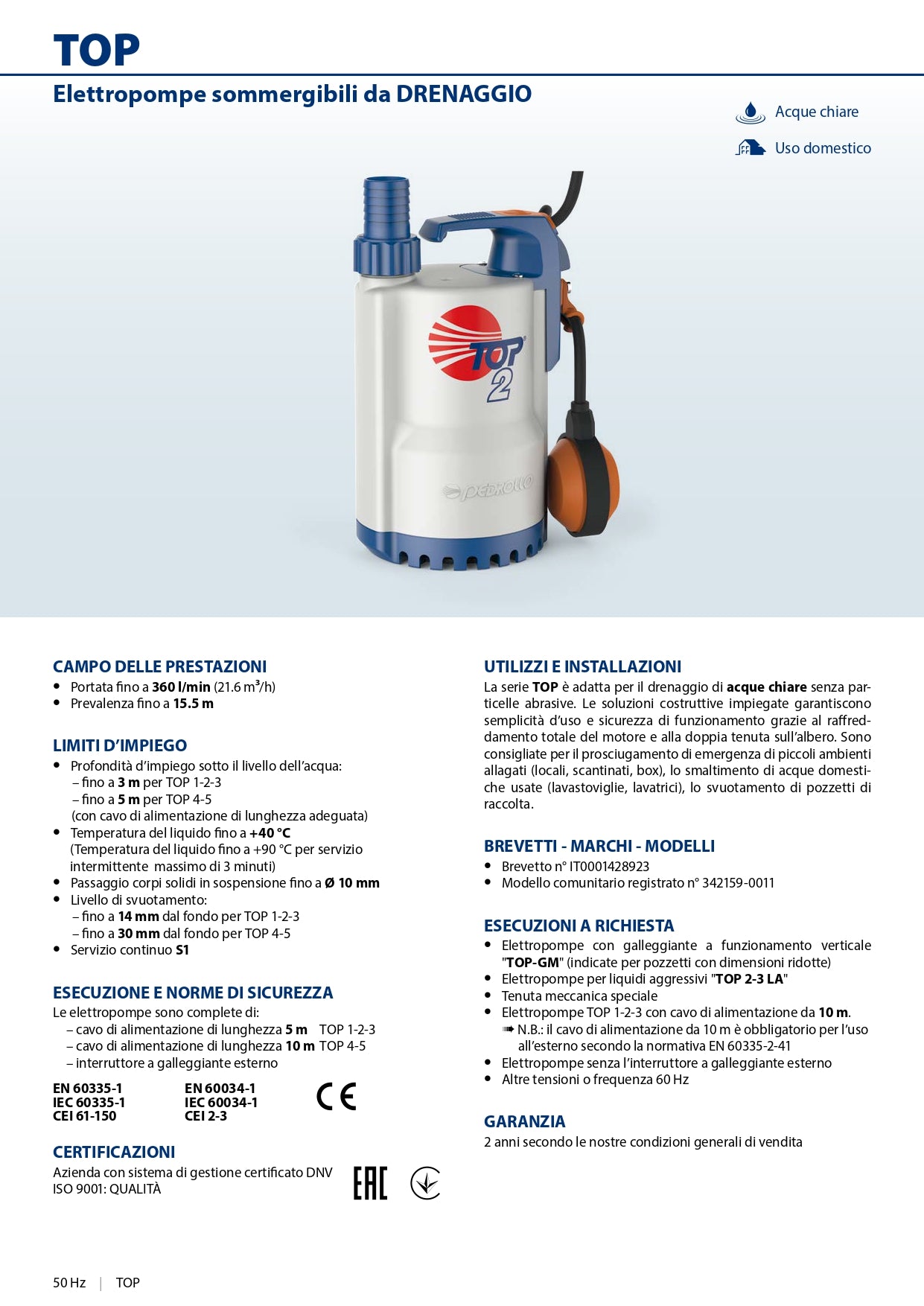 PEDROLLO Elettropompa sommergibile per drenaggio acque chiare 0,33HP TOP1