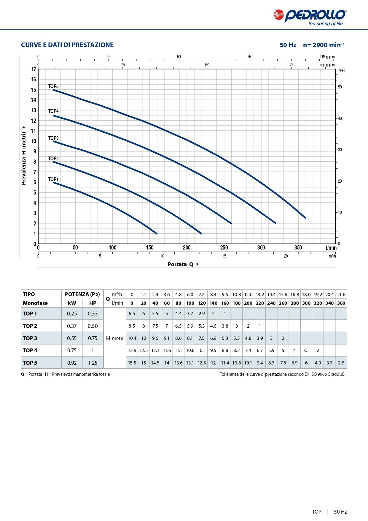 Elettropompa Sommersa TOP 1 0,25kW - 0,33HP Portata : 20/160 litri/minuto Prevalenza MAX 6 metri Elettropompa sommergibile da drenaggio modello Top1Adatta per il drenaggio di acque chiare senza particelle abrasiveLe soluzioni costruttive impiegate garantiscono semplicità d'uso esicurezza di funzionamento grazie al raffreddamento totale del motore e alladoppia tenuta sull'alberoConsigliata per il prosciugamento di emergenza di piccoli ambienti allagati(locali, scantinati, box),lo smaltimento di acque domestiche usatelo svuotamento di pozzetti di raccoltaTipo: Elettropompe sommergibili da DRENAGGIOTipo d'acqua: Acque chiareCaratteristiche: Sommergibile Scheda Tecnica: disponibile qui