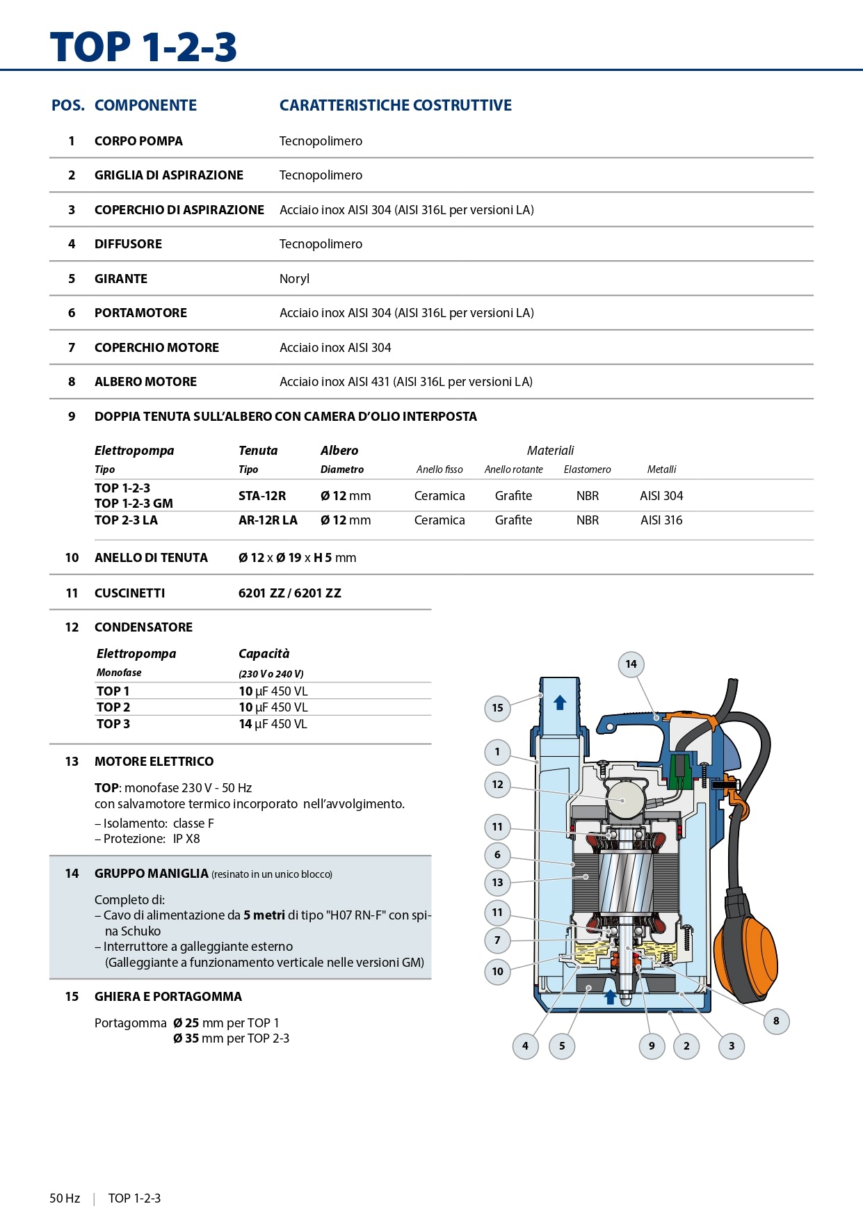 Elettropompa Sommersa TOP 1 0,25kW - 0,33HP