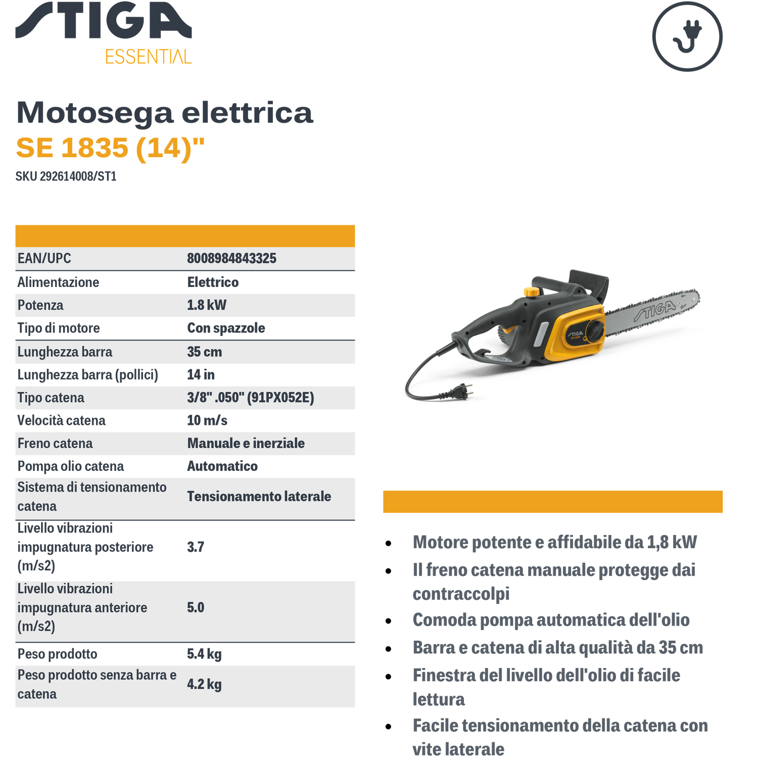 STIGA Motosega elettrica 1800W barra da 35cm SE 1835