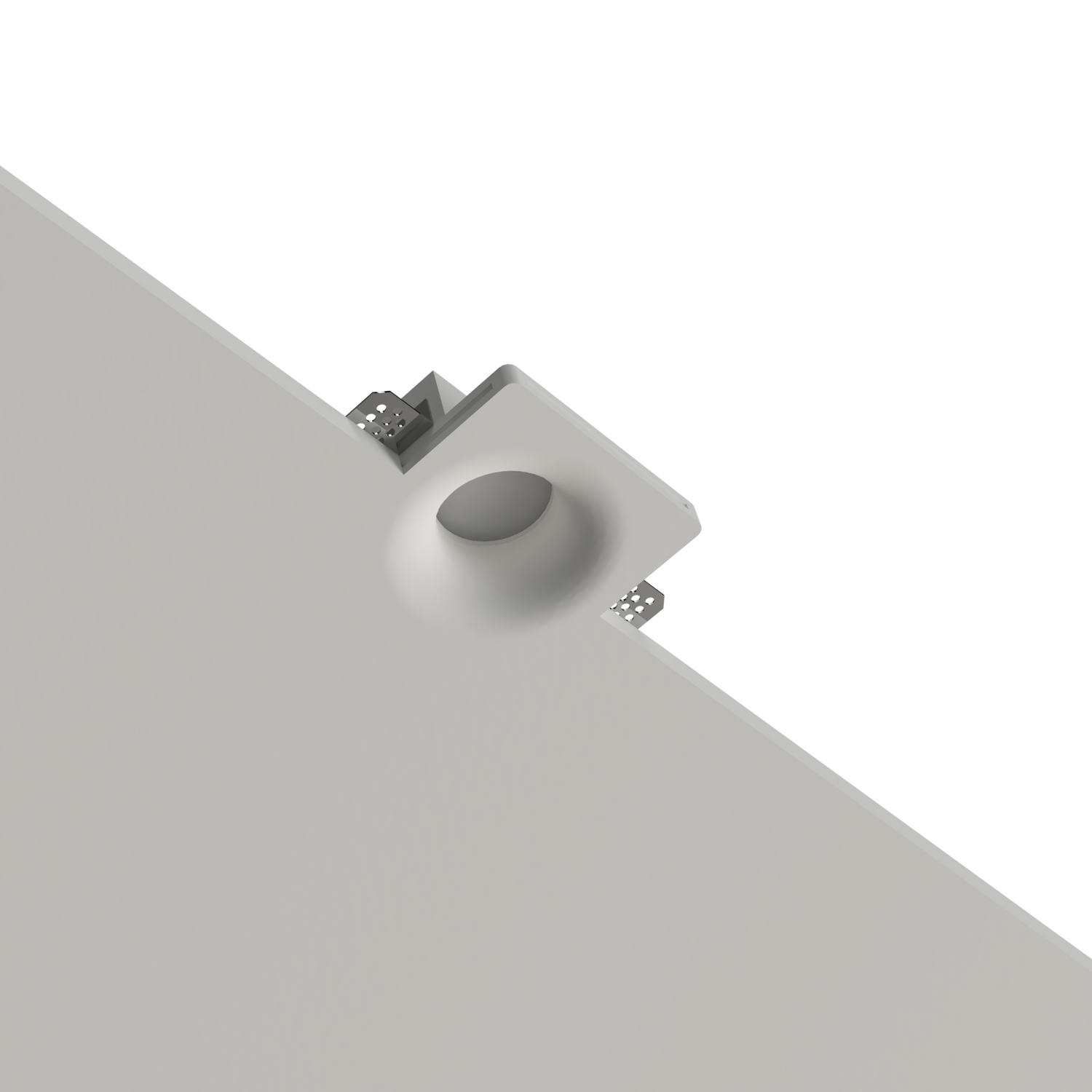 Faretto da incasso per controsoffittature dalla forma rotonda con interno di forma stondata verso l'interno. Adatto per lampada con attacco GU10