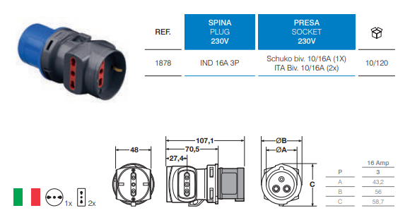 - Presa Schuko bivalente 10/16A (1X) ITA Bivalente 10/16A (2x)