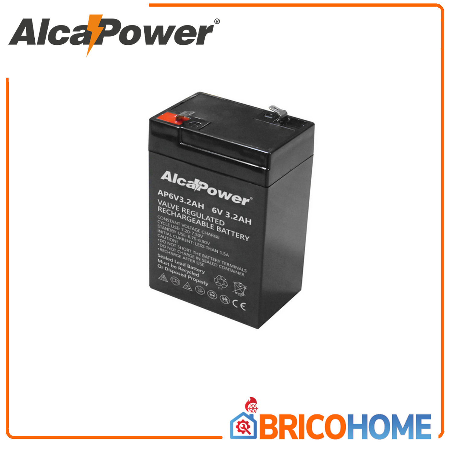 Batteria al piombo ricaricabile ermetica 6V 3,2Ah ideale per Lampade Emergenze Larghezza: 66 mm Altezza: 103 mm Profondità: 33 mm Spina: Faston
