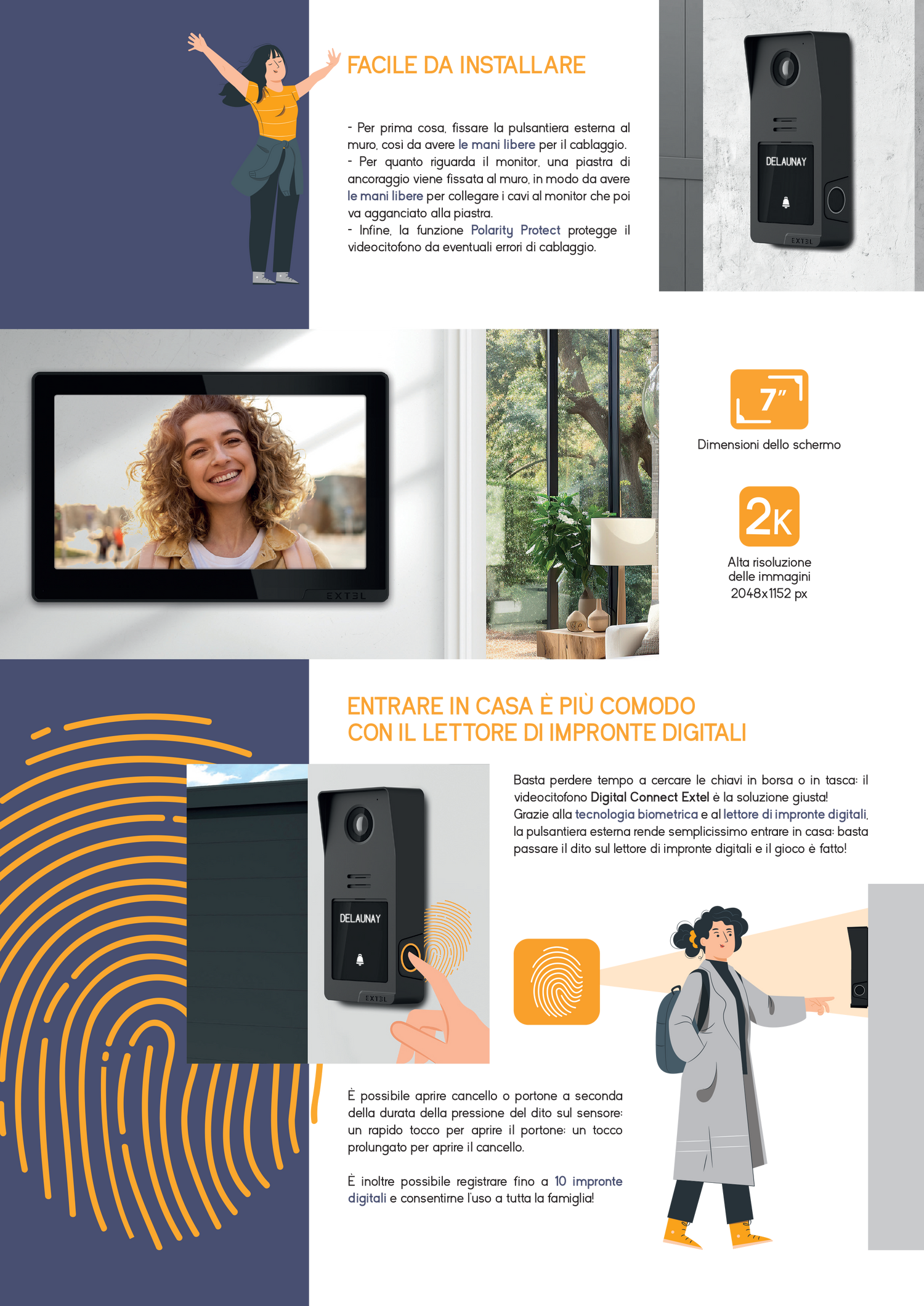 Extel Videocitofono cablato connesso con accesso tramite impronta digitale e generazione codici QR