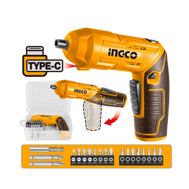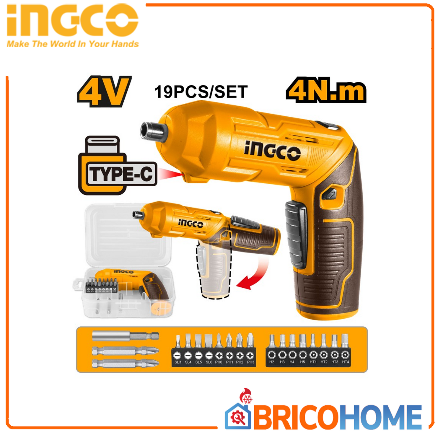 INGCO CSDLI0442 – Avvitatore a Batteria 4V | LED | USB-C | 19 Accessori
