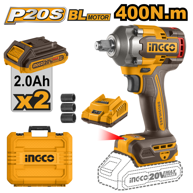 Avvitatore ad Impulsi Brushless INGCO CIWLI2040E – 20V | 400 Nm con Doppia Batteria