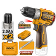 INGCO Trapano Avvitatore Compact Brushless 60Nm 16V con 2 batterie 2.0Ah e Valigetta