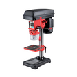 Trapano a colonna TR13RD con motore elettrico da 350W. 5 velocità, 630-2.800 giri/min. Piano di lavoro in ghisa con dimensioni 160x160 mm, inclinabile 0-45°. Mandrino da 13mm (attacco B16 CM2). Corsa mandrino 50mm. Distanza massima mandrino-piano di lavoro 175mm, mandrino-base 260mm, interasse mandrino-colonna 127mm. Albero mandrino su cuscinetti a sfere. Diametro colonna 46mm.