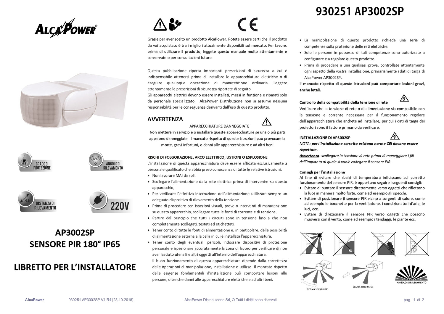 930251 Sensore PIR 180° IP65