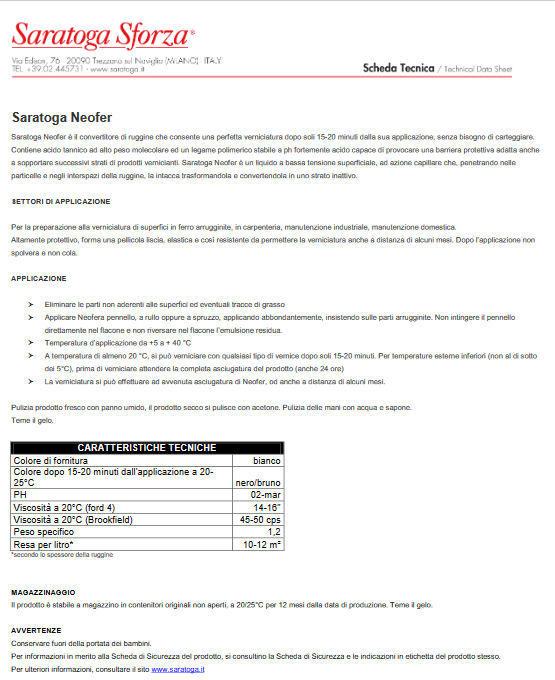 Convertitore di ruggine Neofer 250ml SARATOGA