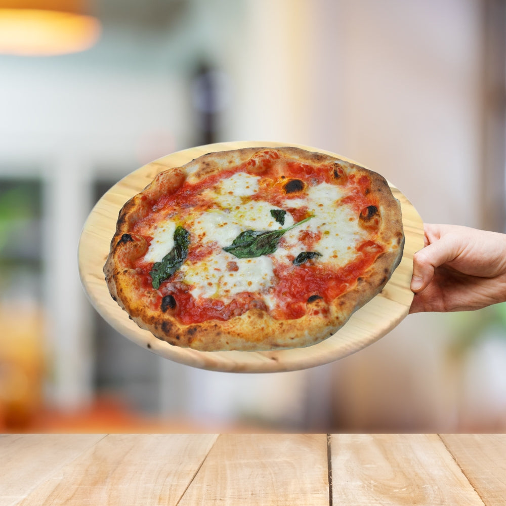Perfetto per servire e gustare la pizza direttamente a tavola, questo tagliere è realizzato in legno di pino naturale, robusto e durevole. Con un diametro di 33 cm, è ideale per pizze di dimensioni standard, garantendo praticità durante il taglio e il servizio.