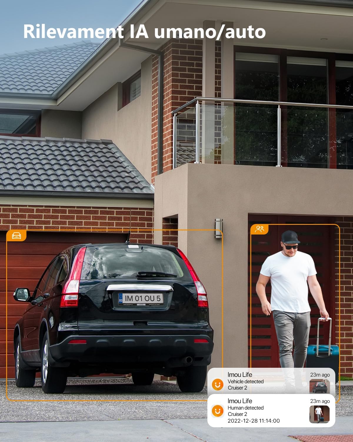 - 【Rilevamento IA Umano/Auto & Avvisi Vocali Personalizzabili】La videocamera sorveglianza esterno wifi Imou adotta l'algoritmo Al aggiornato, che possono identificare con precisione la forma umana o i veicoli e inviare le informazioni a te, in modo che tu possa rispondere in tempo. Dopo aver ricevuto una notifica, puoi spaventare efficacemente gli ospiti non invitati attraverso la vocale personalizzabile.