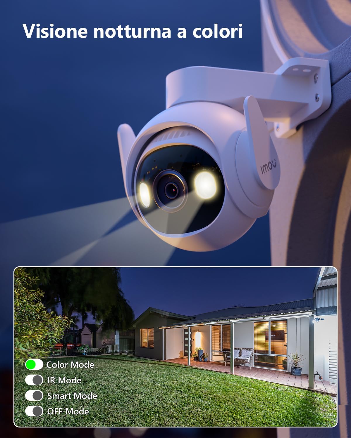 Imou 3K Telecamera Wi-Fi Esterno, Telecamera WiFi di Sorveglianza 5MP Visione Notturna a Colori, Copertura Visiva a 360°, IP66