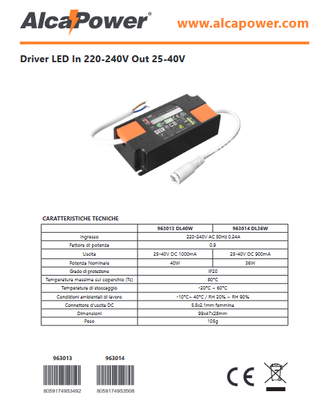 LED-Treiber Eingang 220-240 V Ausgang 25-40 V 900 mA DC 36 W