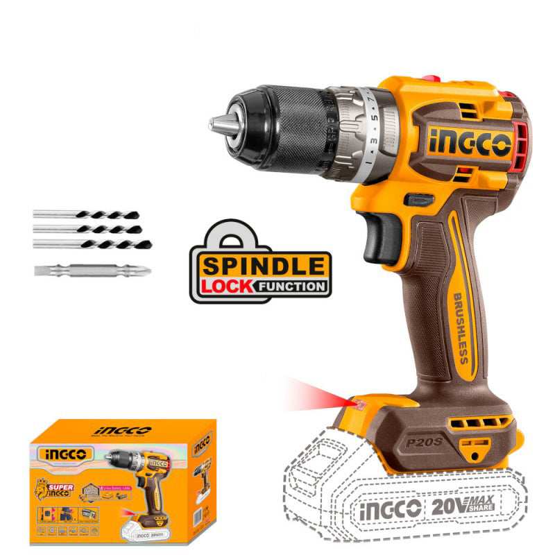KOMPAKTER Bohrschrauber mit Schlagwerk 20V 60Nm BÜRSTENLOS, blank (nur Gehäuse) - INGCO