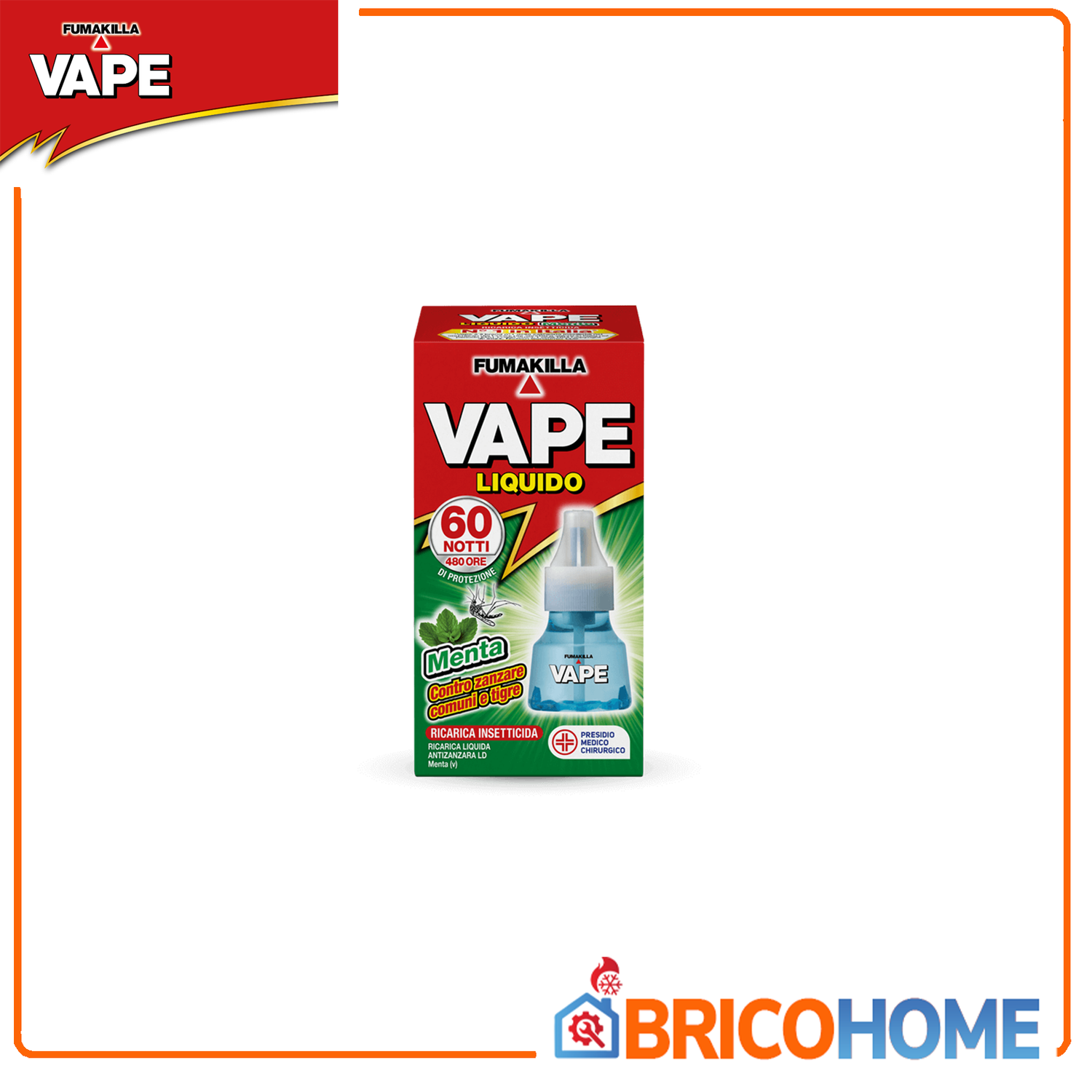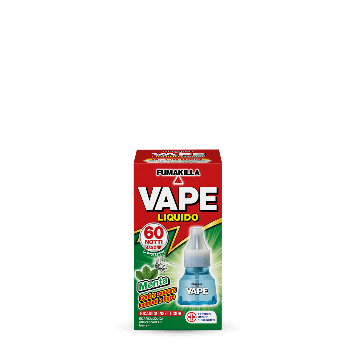 Vape-Nachfüllflüssigkeit Mint FLÜSSIGE ANTI-MÜCKEN-NACHFÜLLUNG LD – Mint (v) ist ein flüssiges Insektizid für Elektroemanatoren, das gegen Mücken in häuslicher Umgebung wirksam ist, einschließlich Mücken der Arten Culex pipiens und Aedes albopictus , die gefährliche Krankheiten wie Chikungunya und Zika übertragen können. Dank des Vorhandenseins aromatischer Extrakte in der Formel verbreitet LIQUID ANTI-MOSQUITO REFILL LD – Mint (v) einen angenehmen Duft in den Räumen. 60 Nächte Medizinisch-chirurgische Einheit.Reg. Nr. 20905 des Gesundheitsministeriums. Lesen Sie vor der Verwendung sorgfältig die Anweisungen und Warnhinweise auf dem Etikett. Gebrauchsanweisung Setzen Sie den Behälter mit LIQUID ANTI-MOSQUITO REFILL LD - Mint (v) in den entsprechenden...