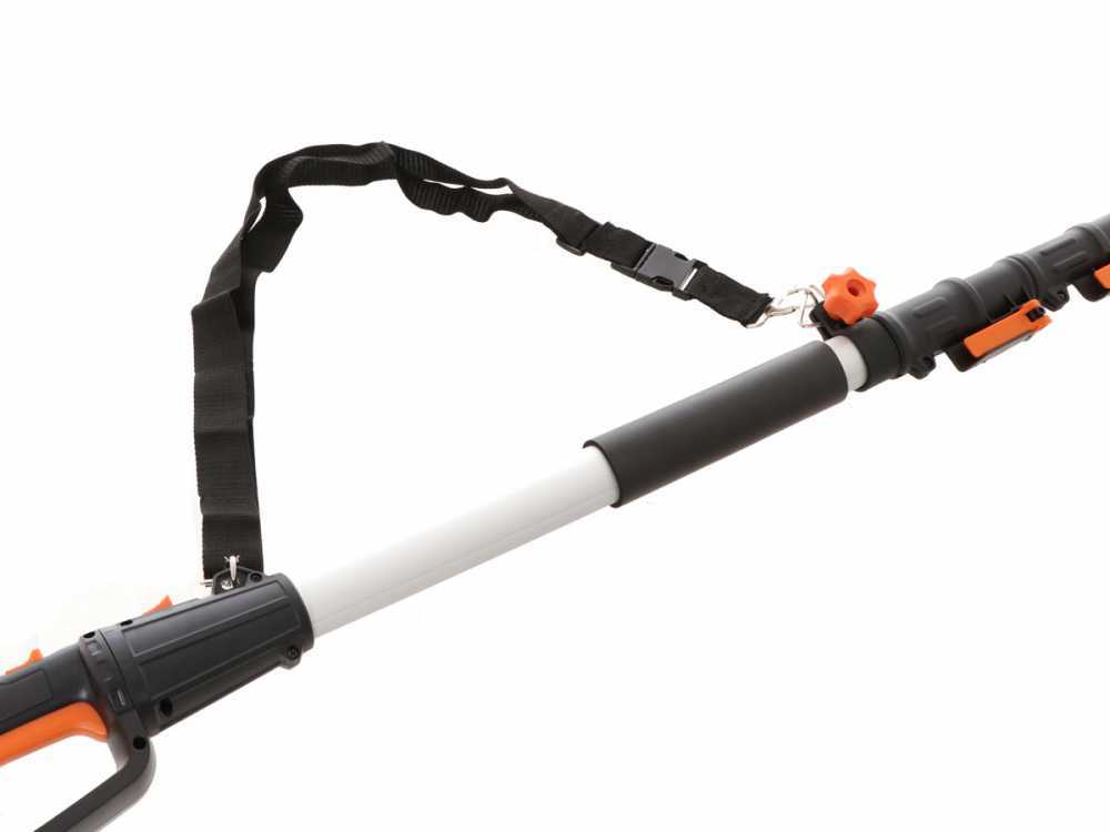 Kompakt und leicht dank Reihenmotor, ist der Worx WG349 E mit einer verstellbaren Teleskopbefestigung für die Stange und einem automatischen Kettenspannungs- und Schmiersystem ausgestattet.