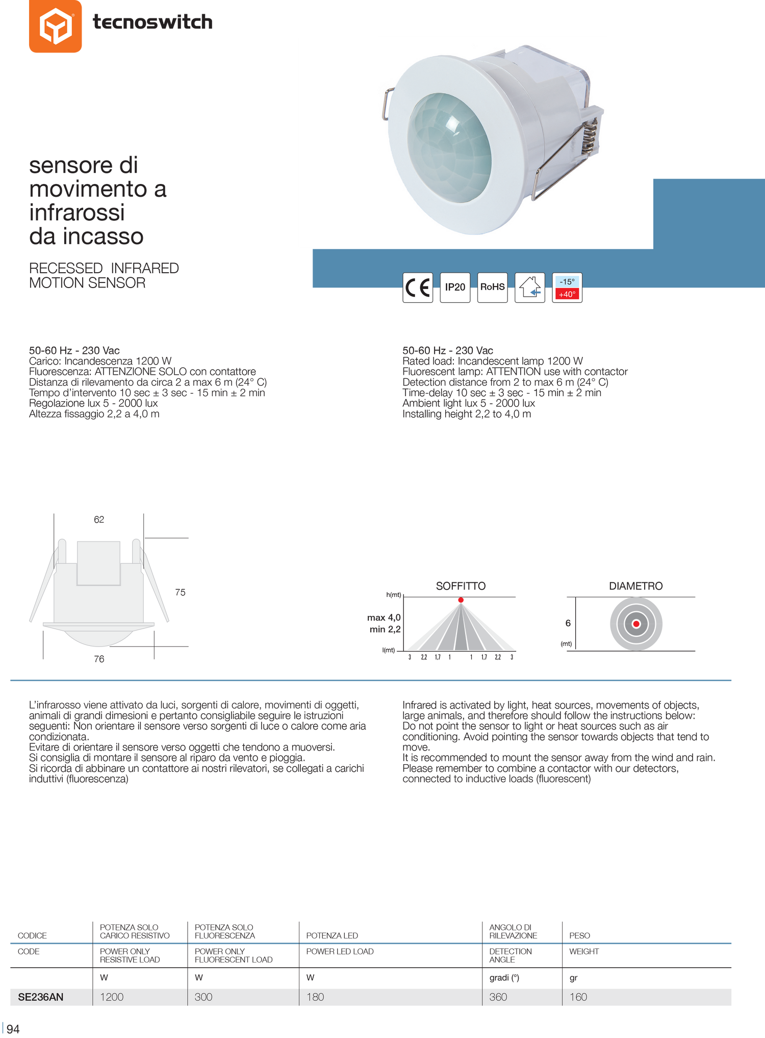 Erfassungsreichweite von ca. 2 bis max. 6 m einstellbar (24° C) bei 360°