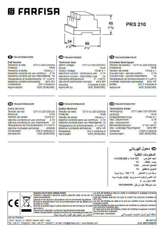 Stromversorgungstransformator - PRS210 FARFISA ist auf Lager und wird versandt, sobald es wieder verfügbar ist