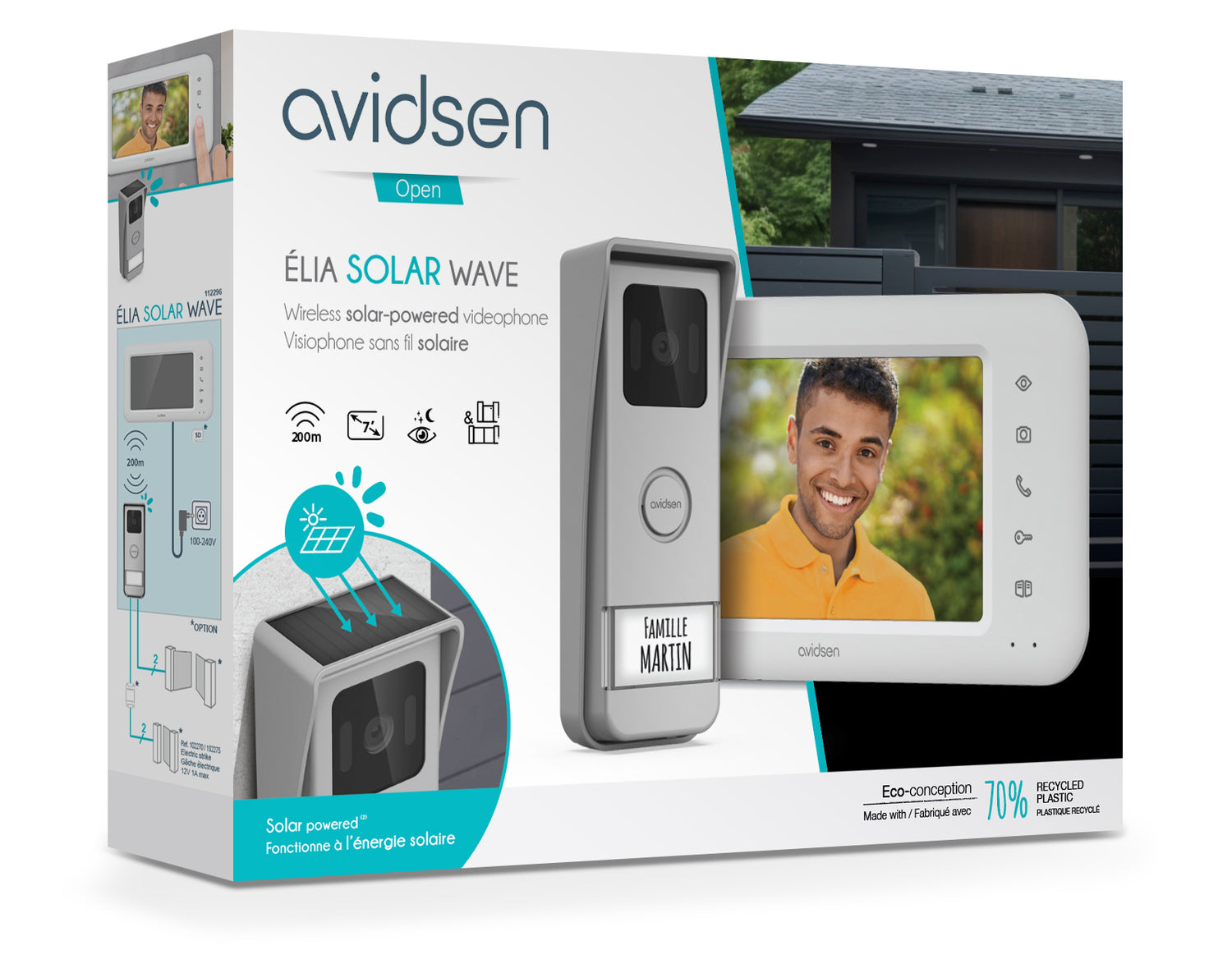 Il videocitofono Élia Solar Wave è il prodotto ideale per il controllo dei tuoi ingressi senza la necessità di installare cavi o connessioni elettriche complesse, essendo completamente senza fili.