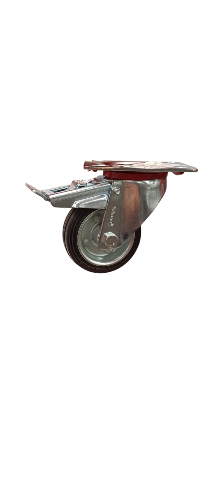 RUOTA GOMMATA BASE GIREVOLE CON FRENO 80X24 MM