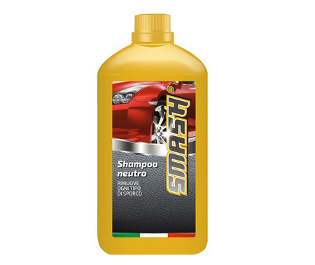 Smash shampoo neutro 1 L Descrizione: Formulato per lavare la carrozzeria esterna dell’auto. Pulisce e rimuove ogni tipo di sporco senza aggredire le parti in plastica. Sgrassa in profondità grazie alla sua efficace azione detergente. Seguire i consigli di utilizzo per avere una resa ottimale.