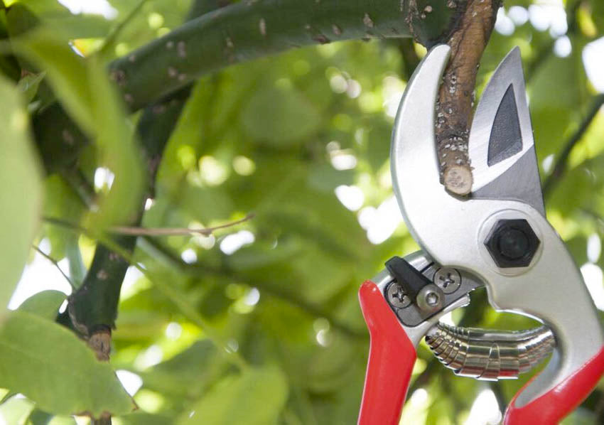 Die Schlagklinge vermeidet den Rückschlag am Handgelenk am Ende des Schnitts, während die gebogene Form der Gegenklinge den Ast während der gesamten Schnittphase in Position hält.