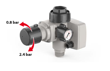 Für EINPHASIGE Pumpen bis 2 PS. Einstellbarer Wiederanlaufdruck.