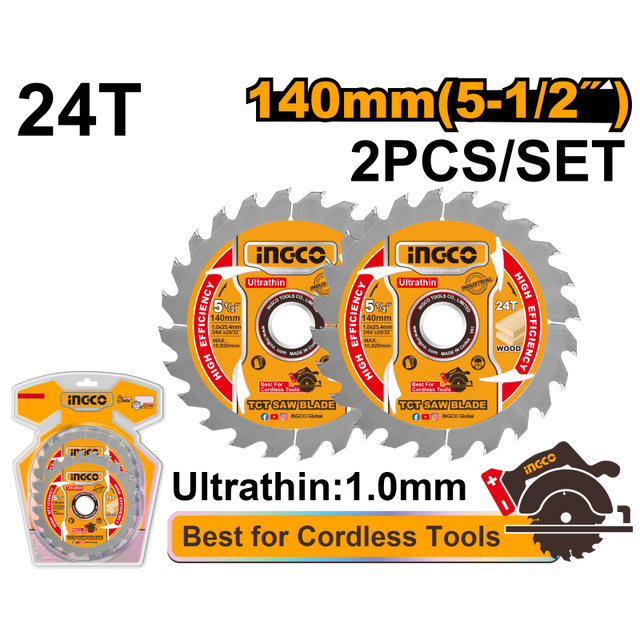 INGCO – Set 2 Lame TCT Ultrasottili 140mm | 24 Denti | Per Sega Circolare