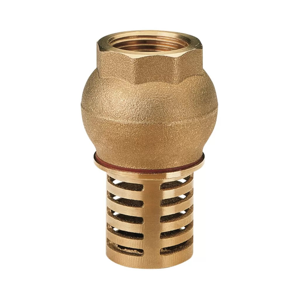 Fußventil 140 1" 1/4 (DN 32) BEZEICHNUNG Gehäuse und Filter aus Messing. Faserfilterdichtung. Siegel aus Messing. Dichtung aus NBR. Minimale und maximale Betriebstemperatur: 0°C, 90°C. Anschlussgewinde: ISO 228 (entspricht DIN EN ISO 228 und BS EN ISO 228). Erhältlich mit amerikanischem NPT-Gewinde in den Größen 2"1/2", 3" und 4". GRÖSSE: 1'' 1/4 GRÖSSENTABELLE