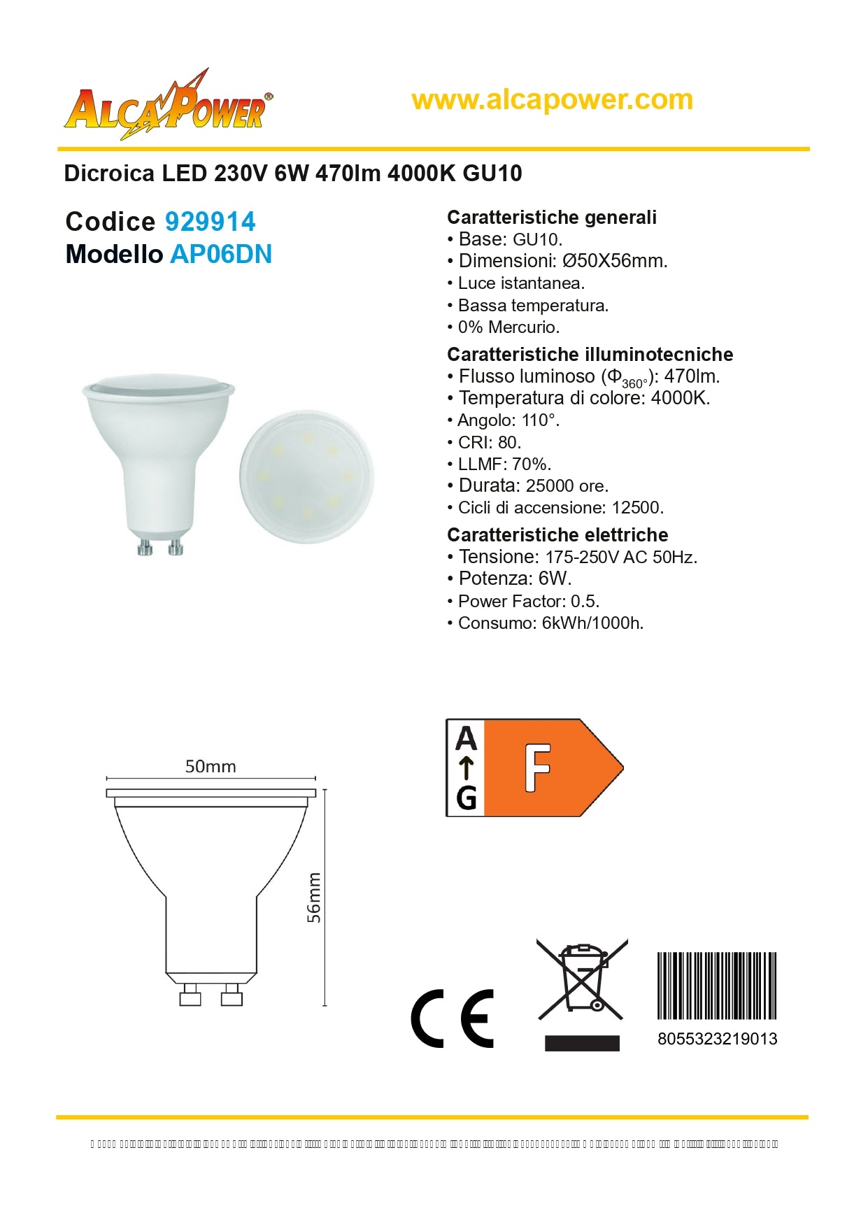 GU10 dichroic led bulb 6W 470lm natural light 4000K