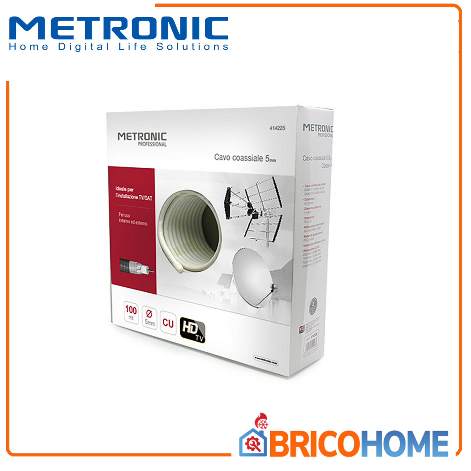 5mm TV cable skein in box 100m Technical features Conductor material: 0.82mm copper (CU). PVC cable 5mm diameter 100 meters Strengths 5mm coaxial cable skein Ideal for TV and SAT systems Class A Compliant with CPR standards Description 5mm coaxial cable ideal for very high quality TV and Satellite systems. Pvc cable with 0,82mm copper core (CU). Aluminum insulating shield. Complies with current legislation (CPR). For internal and external use. It allows the transmission of analogue and digital signals in high definition and 4K with low losses and excellent interference shielding. Length indication on the cable, every metre. Box with...