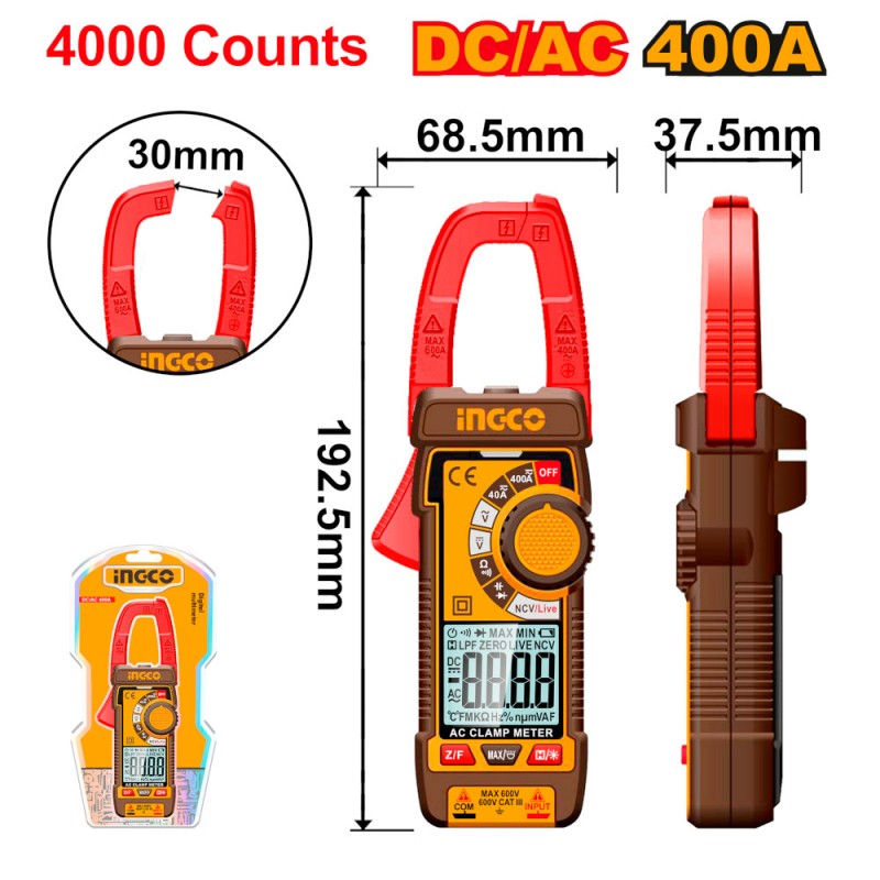 INGCO Multimetro a pinza digitale DC-AC 400A