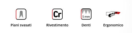 The particular processing of the blade called "flared planes" is designed to improve penetration into the branch by radically reducing friction.