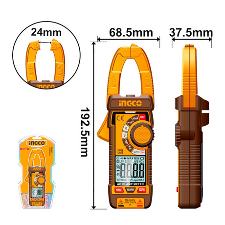INGCO DCM62001 – Multimetro con Pinza Amperometrica Digitale AC 400A | True RMS | 4000 Counts
