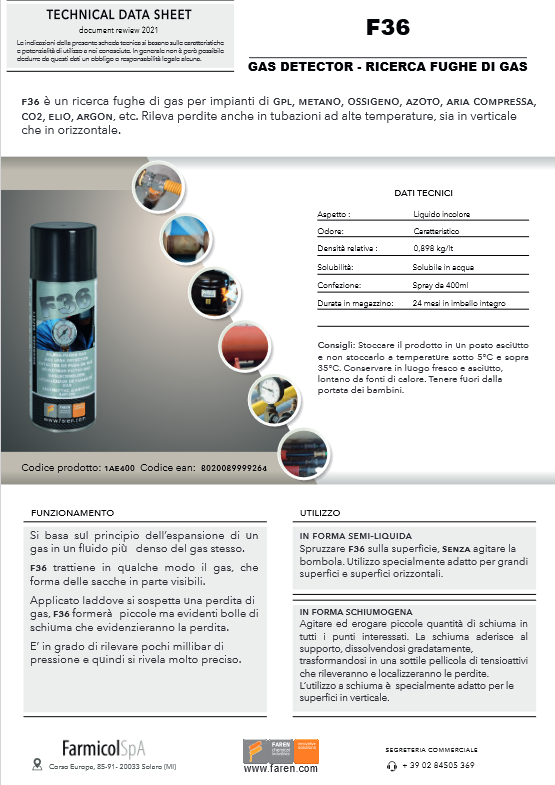 FAREN F 36 BOTTLE DETECTS GAS LEAKS ML. 400