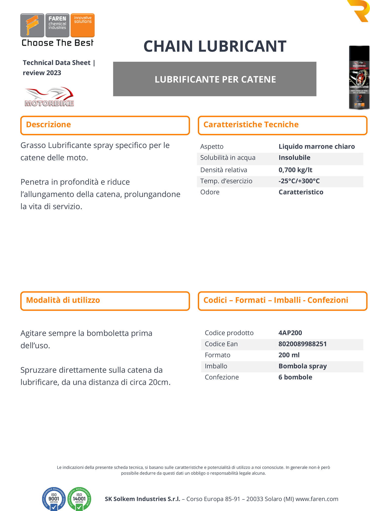 Grasso lubrificante spray per catena CHAIN LUBRICANT