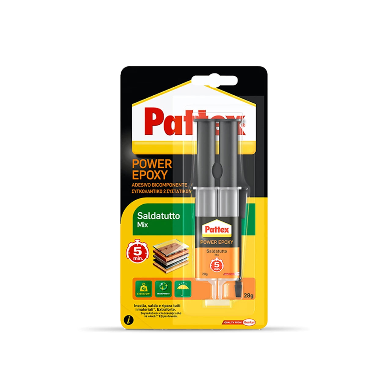Pattex Power Epoxy Saldatutto Instant Mix 1min guarantees you a high level performance on practically any material to be repaired.