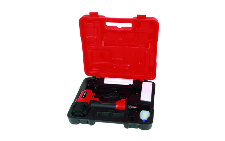 La graffettatrice pneumatica TC-PN 50 di Einhell è un apparecchio versatile, idoneo per l'utilizzo in officina, a casa e in garage. Questo apparecchio 2 in 1 comprende la funzione di spillatrice pneumatica e chiodatrice pneumatica, ideale per i lavori di riparazione e ristrutturazione. L'impugnatura antiscivolo permette di lavorare in sicurezza. Offre le migliori prestazioni a partire da un diametro interno del tubo flessibile di 9 millimetri. Il dispositivo di sicurezza di cui è dotata impedisce l'accensione accidentale dell'apparecchio. L'apposito indicatore mostra il livello di graffette o chiodi restanti. Dotata di impostazione della profondità per la regolazione esatta della percussione quando si eseguono lavori di precisione. Nella dotazione di consegna sono incluse 500 graffette rispettivamente nelle lunghezze da 16/25/40 mm, 1.000 chiodi di lunghezza 25/40 mm, 1 boccetta d'olio, 1 raccordo rapido e 2 chiavi a brugola. La pratica valigetta di custodia e trasporto è compresa in dotazione.