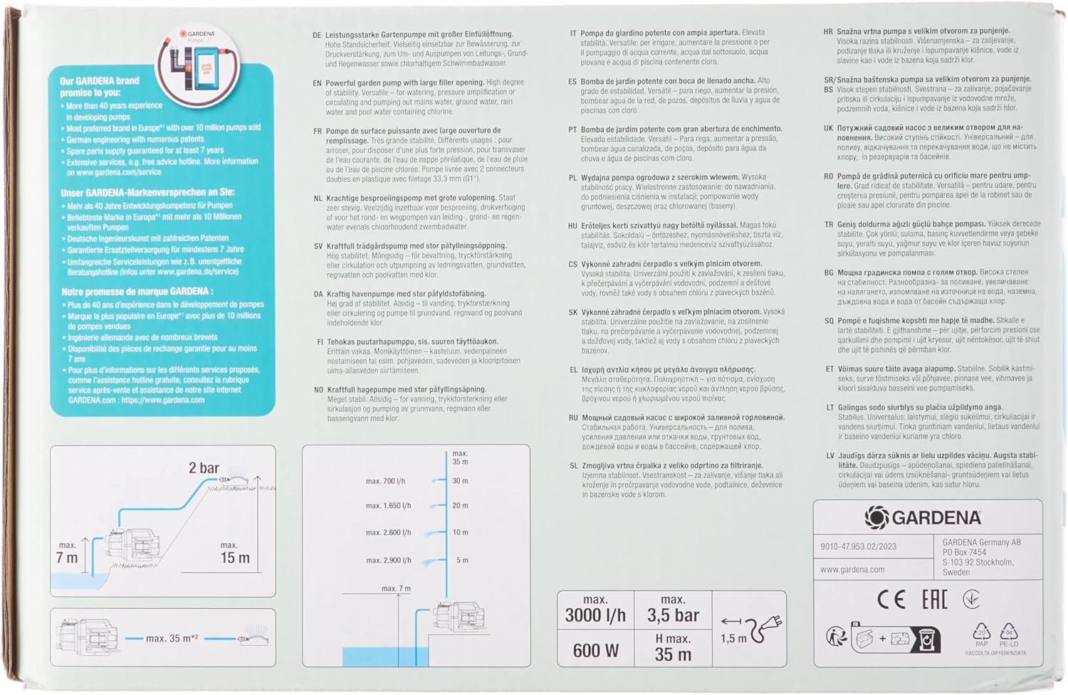 GARDENA Pompa elettrica da giardino 3000/4 Basic is backordered and will ship as soon as it is back in stock.