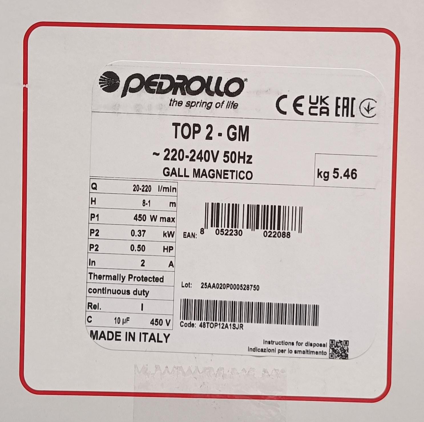 Elettropompa sommergibile per drenaggio acque chiare 0,50HP TOP2 -GM PEDROLLO