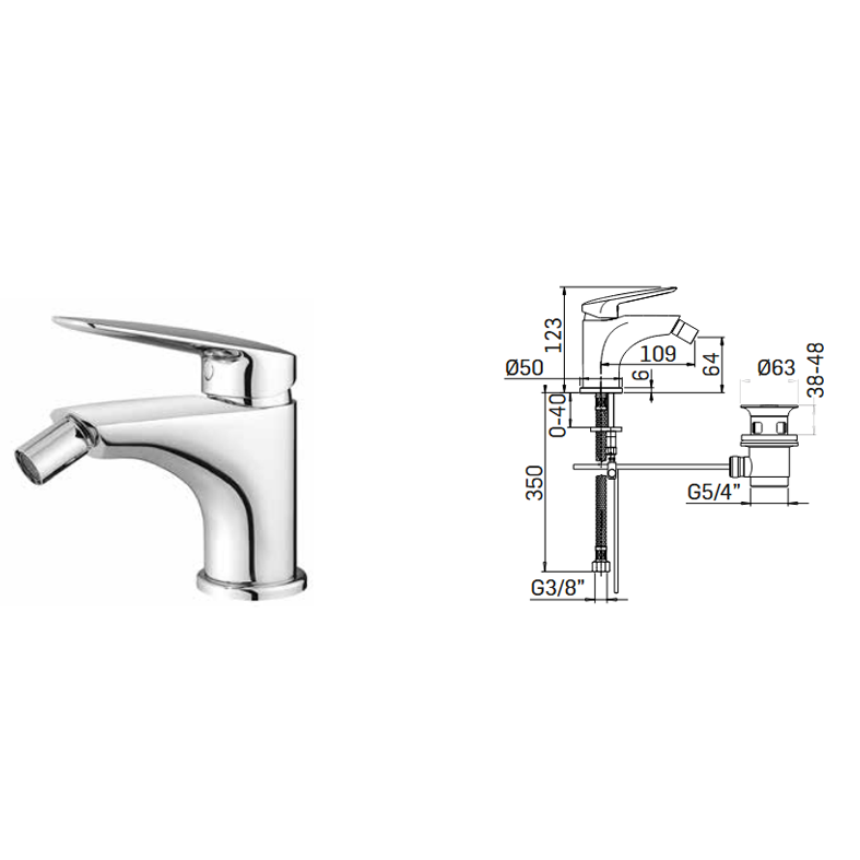 Miscelatore monocomando per bidet con scarico, finitura Cromo