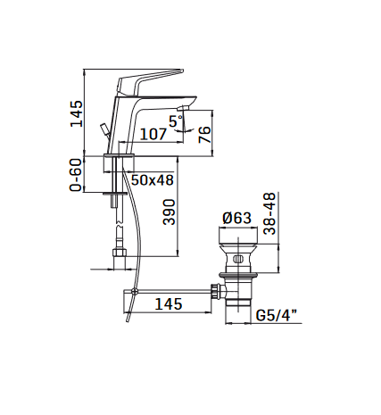 Miscelatore monocomando per lavabo con piletta da 1-1/4”