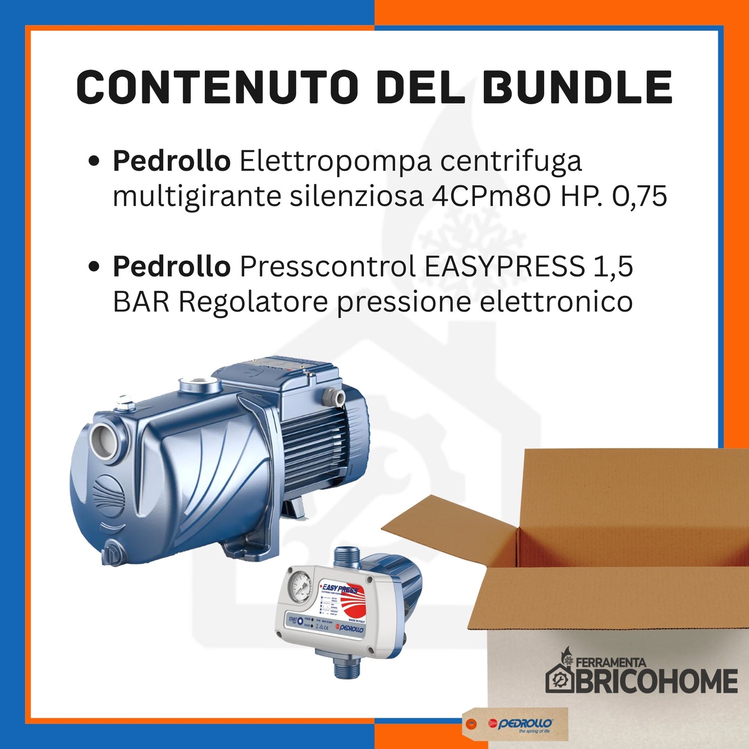 Kit Pedrollo Elettropompa Multigirante 4CPm80 0,75 HP + Presscontrol EASYPRESS 1,5 BAR [BUNDLE]