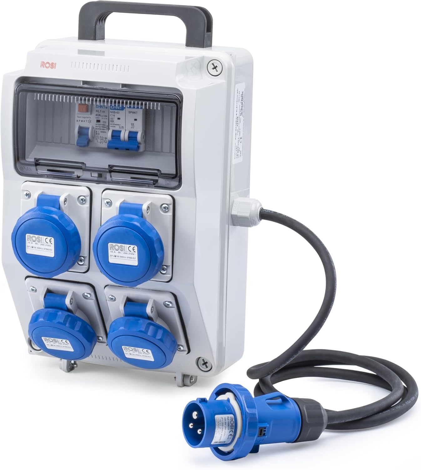 ROSI 2240E – Quadro ASC con 4 Prese monofase 230V 16A Quadro di distribuzione ASC per cantieri e ambienti professionali Il quadro elettrico ROSI 2240E è progettato per garantire sicurezza, affidabilità e praticità nelle applicazioni da cantiere, industriali e artigianali. Realizzato con materiali ad alta resistenza e dotato di prese industriali conformi agli standard CE, rappresenta una soluzione robusta e immediatamente pronta all’uso. Dati Generali Modello: ROSI 2240E Tipologia: Quadro ASC (Apparecchi di Serie per Cantiere) Utilizzo: Cantieri, edilizia, manutenzioni, impianti temporanei Installazione: Portatile / da appoggio Normativa di riferimento: EN 61439‑4 – CE   ⭐ Caratteristiche principali Struttura compatta...