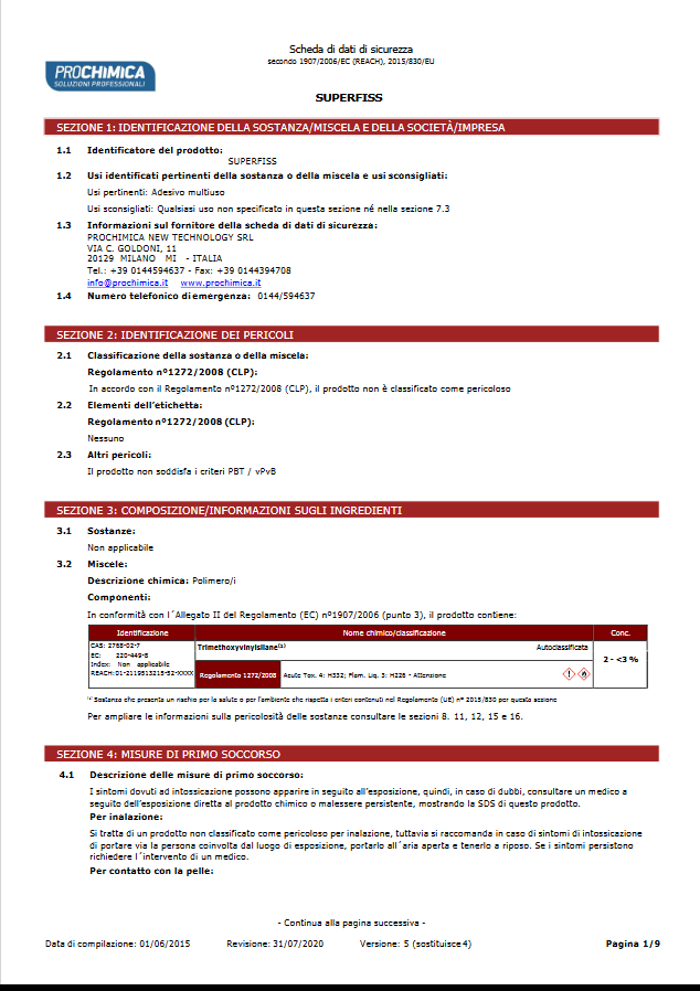 SUPERFISS è un adesivo monocomponente forte, di alta qualità, con una presa molto resistente a base dinuovi polimeri.