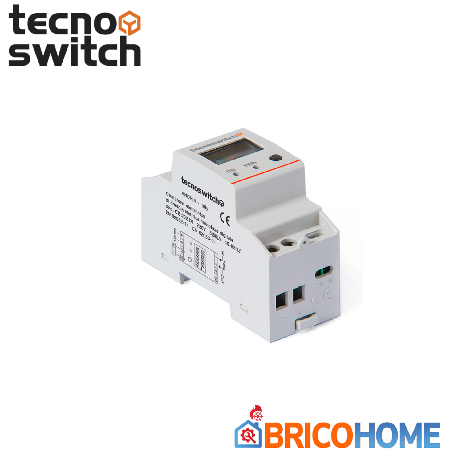 Contatore elettronico digitale di energia elettrica monofase 2 moduli - Tecno Switch