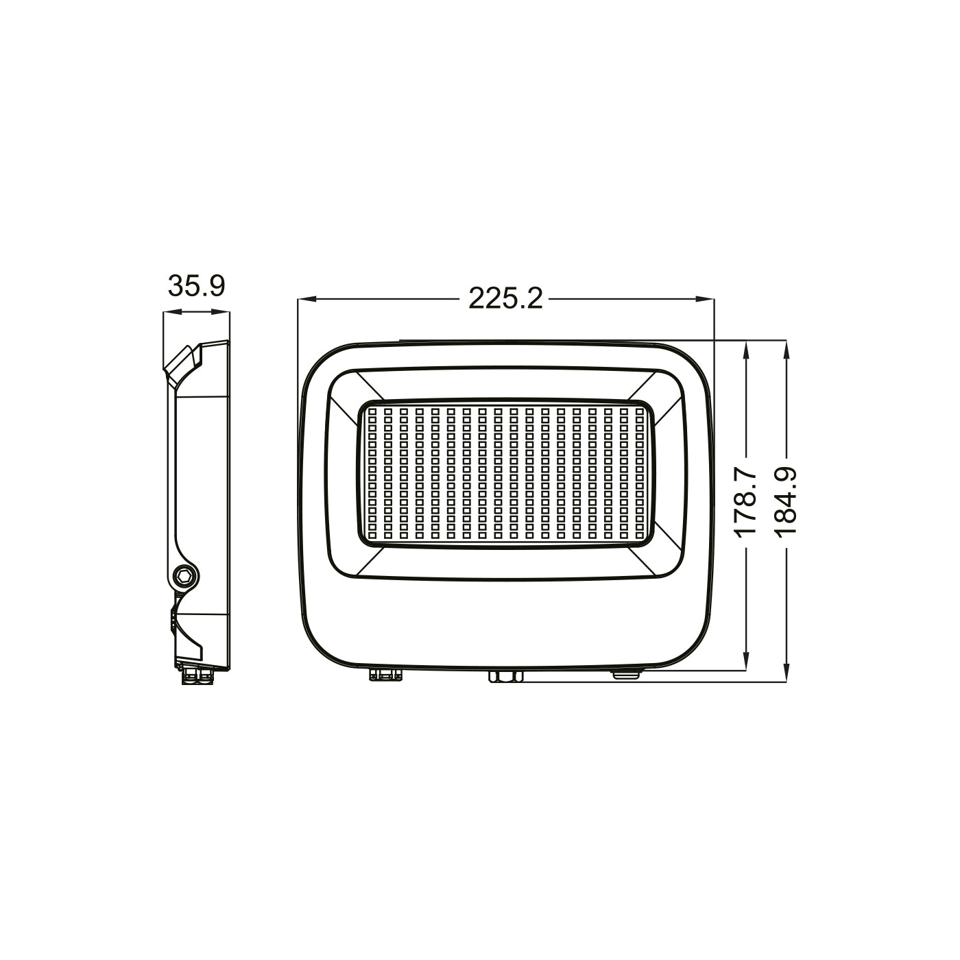 ✅ Potenza: 100W – flusso luminoso fino a 10.400 lumen ✅ CCT selezionabile: 3000K / 4000K / 6000K – luce calda, neutra o fredda ✅ Angolo del fascio: 110° – ampia copertura ✅ Vita utile: 35.000 ore | Cicli di accensione: 17.500 ✅ Grado di protezione: IP66 – impermeabile e resistente alla polvere ✅ Robustezza meccanica: IK06 | Resistenza alla corrosione: C3 ✅ Temperatura di esercizio: da –40°C a +50°C ✅ Materiali: Alluminio + PC + Vetro temperato ✅ Classe energetica: E | Classe di isolamento: I ✅ Dimensioni: 225.2 × 184.9 × 35.9 mm ✅ Peso: 1.160 g ✅ Alimentazione: 230V AC – 50/60Hz ✅ Cavo di alimentazione: 30 cm